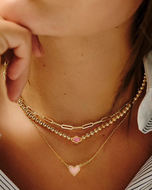 Abbie Gold Beaded Necklace in Azalea Illusion