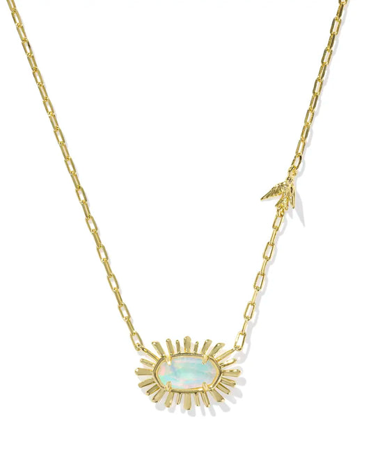 Elisa Bird Gold Short Pendant Necklace in White Opalescent Illusion