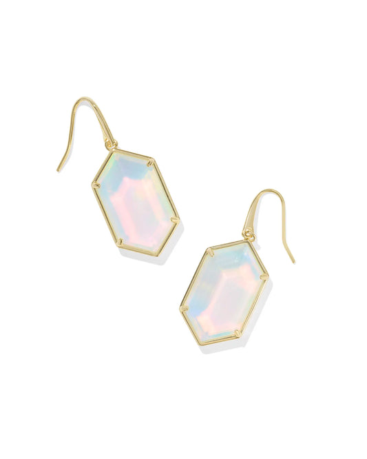 Hallie Gold Drop Earrings in White Opalescent Illusion