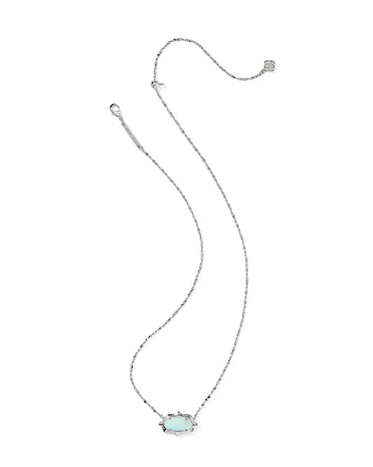 Elisa Scallop Frame Silver Short Pendant Necklace in Sea Green Chrysocolla