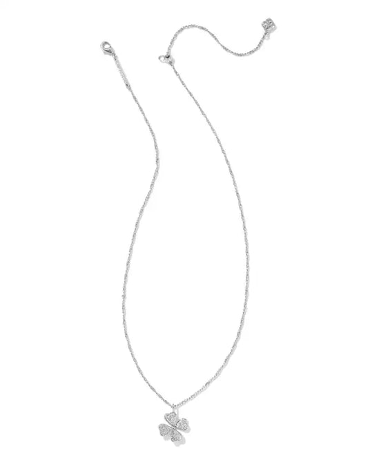 Clover Silver Crystal Short Pendant Necklace in White Crystal