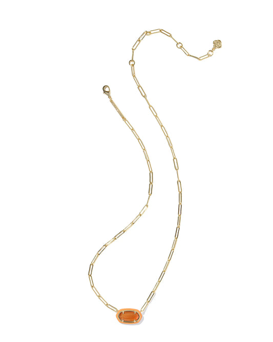 Elisa Enamel Frame Gold Paperclip Necklace in Papaya Mother-of-Pearl