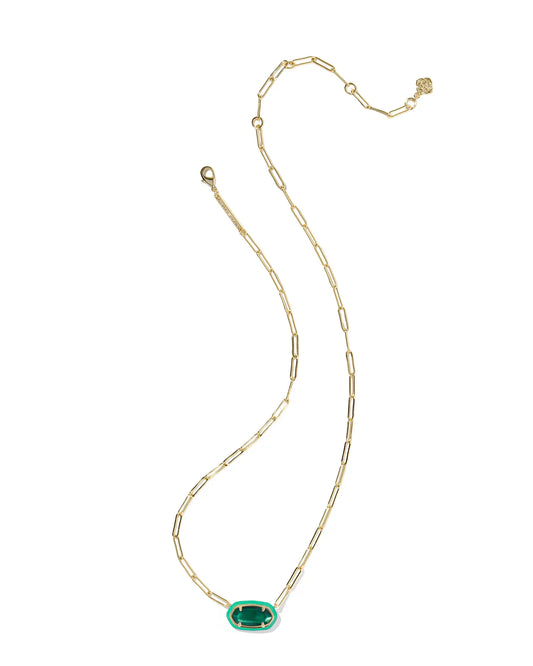 Elisa Enamel Frame Gold Paperclip Necklace in Emerald Illusion