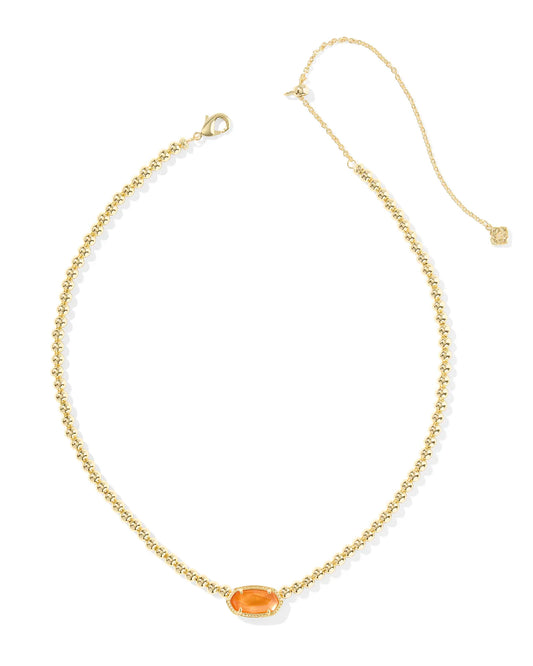 Elisa Gold Beaded Necklace in Papaya Mother-of-Pearl