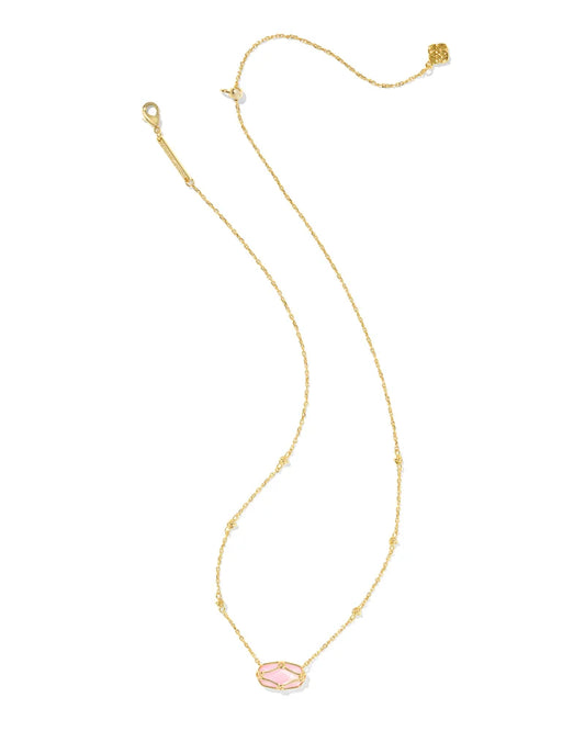 Elisa Lattice Frame Gold Short Pendant Necklace in Blush Ivory Mother-of-Pearl