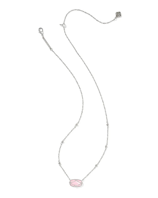 Elisa Lattice Frame Silver Short Pendant Necklace in Blush Ivory Mother-of-Pearl