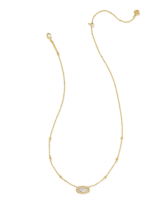 Elisa Lattice Frame Gold Short Pendant Necklace in Ivory Mother-of-Pearl