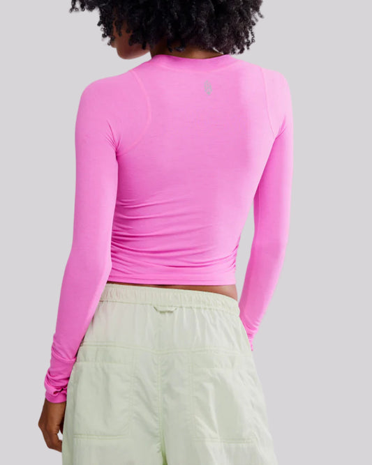 Tempo Ruched Long Sleeve Fuchsia Flirt Top