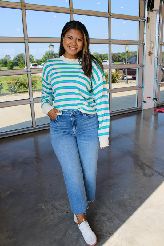 AirEssentials Long Sleeves Side Slit Stripe Top