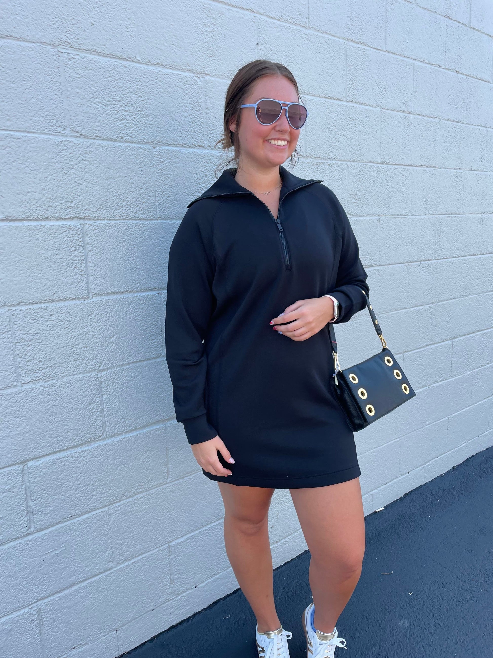 Keep it cute and casual in an easygoing dress crafted with plenty of stretch and cut to a leg-baring length.