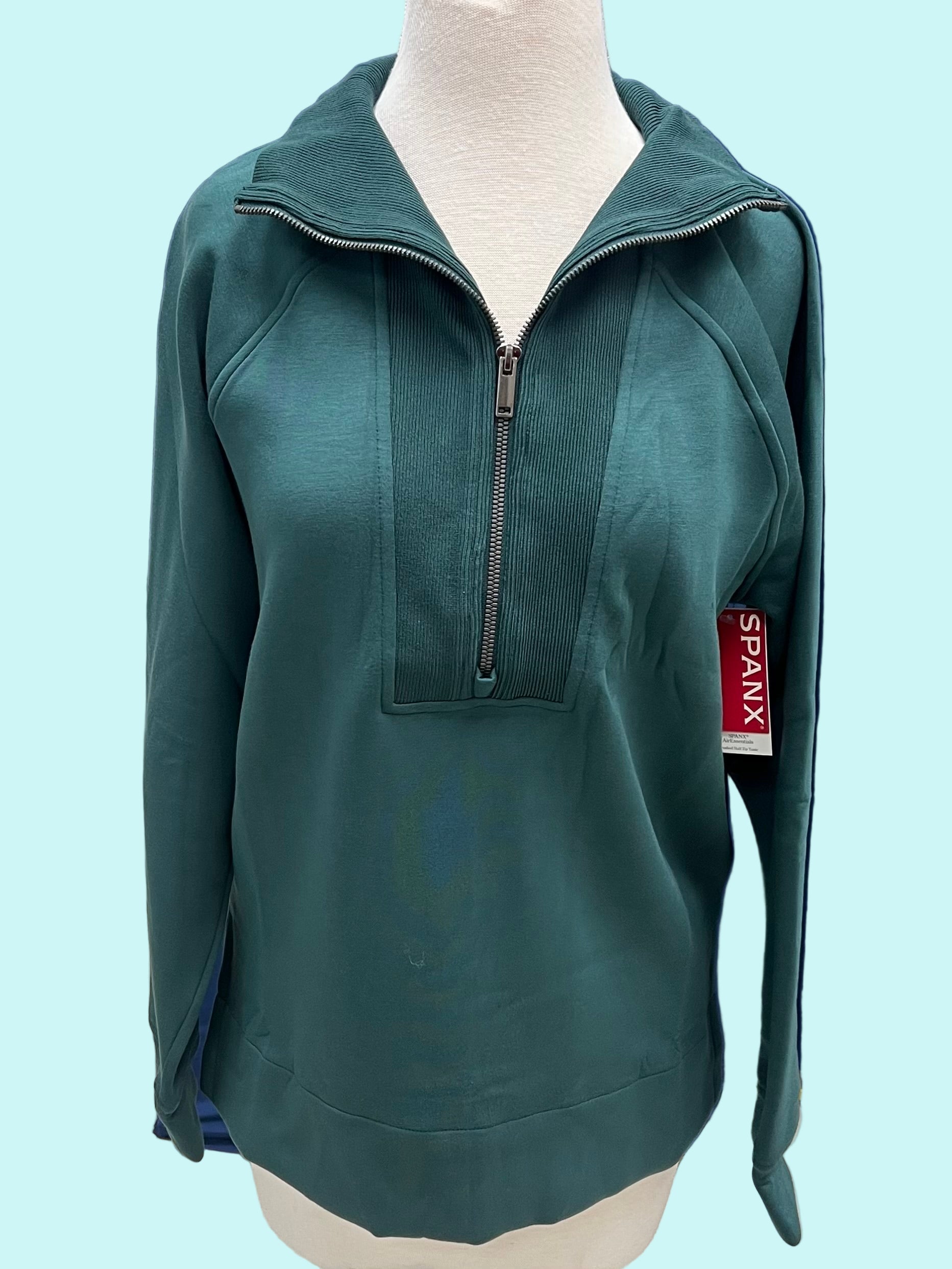 This half zip tunic brings a refined, structured take to your loungewear. Made from the same super-soft spacer fabric as the SPANX® AirEssentials originals, our SPANX® AirEssentials Luxe styles are designed with a little bit more. Crafted with slightly more weight, this top is as comfortable as it is stylish, thanks to ribbed trim at the cuffs and hem. Designed with a longer length for more bum coverage, this top is perfect for layering over leggings or pairing with your favorite SPANX® AirEssentials Luxe pants.