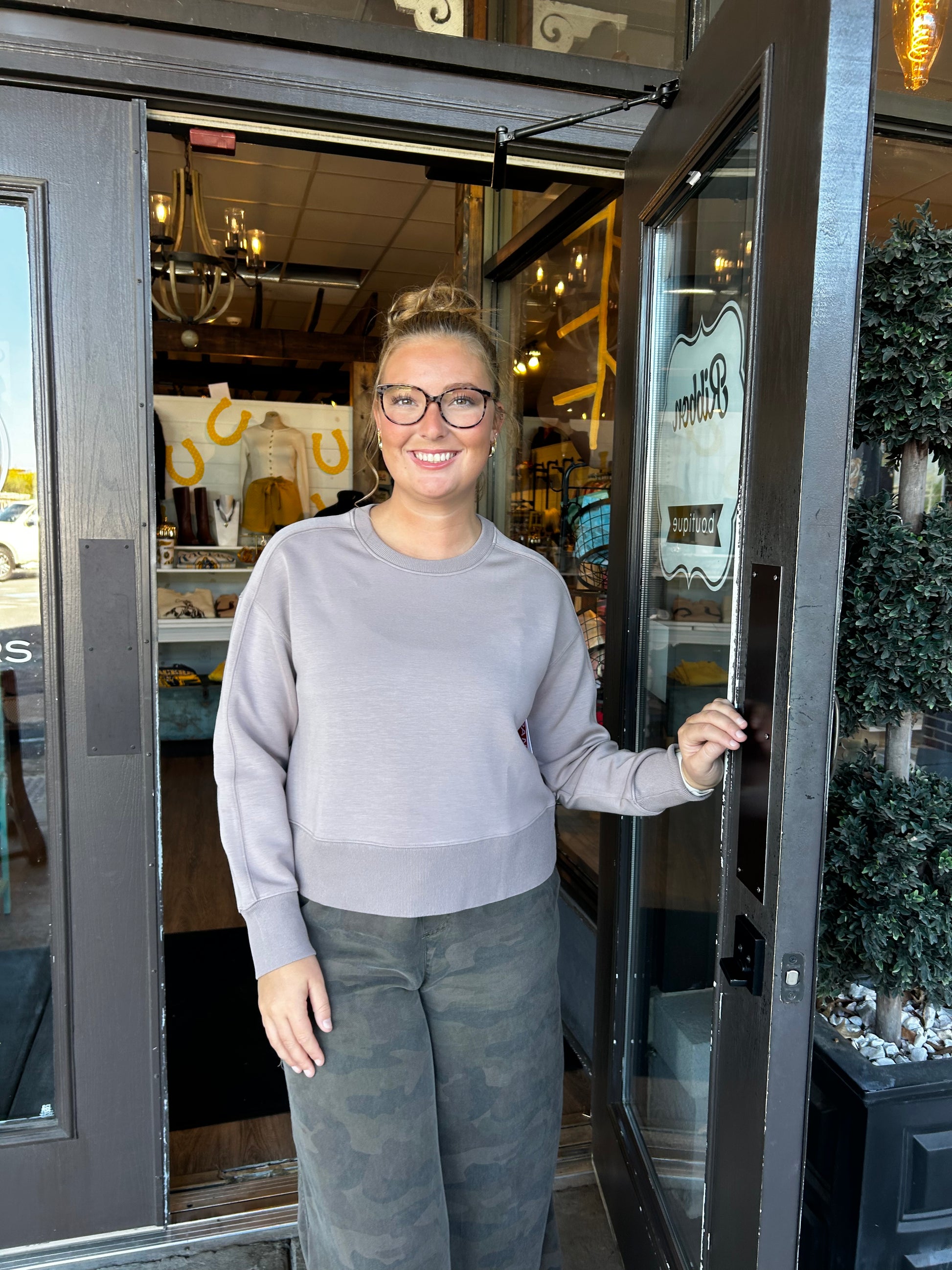 AirEssentials Luxe Long Sleeves Crewneck Coastal Fog Top