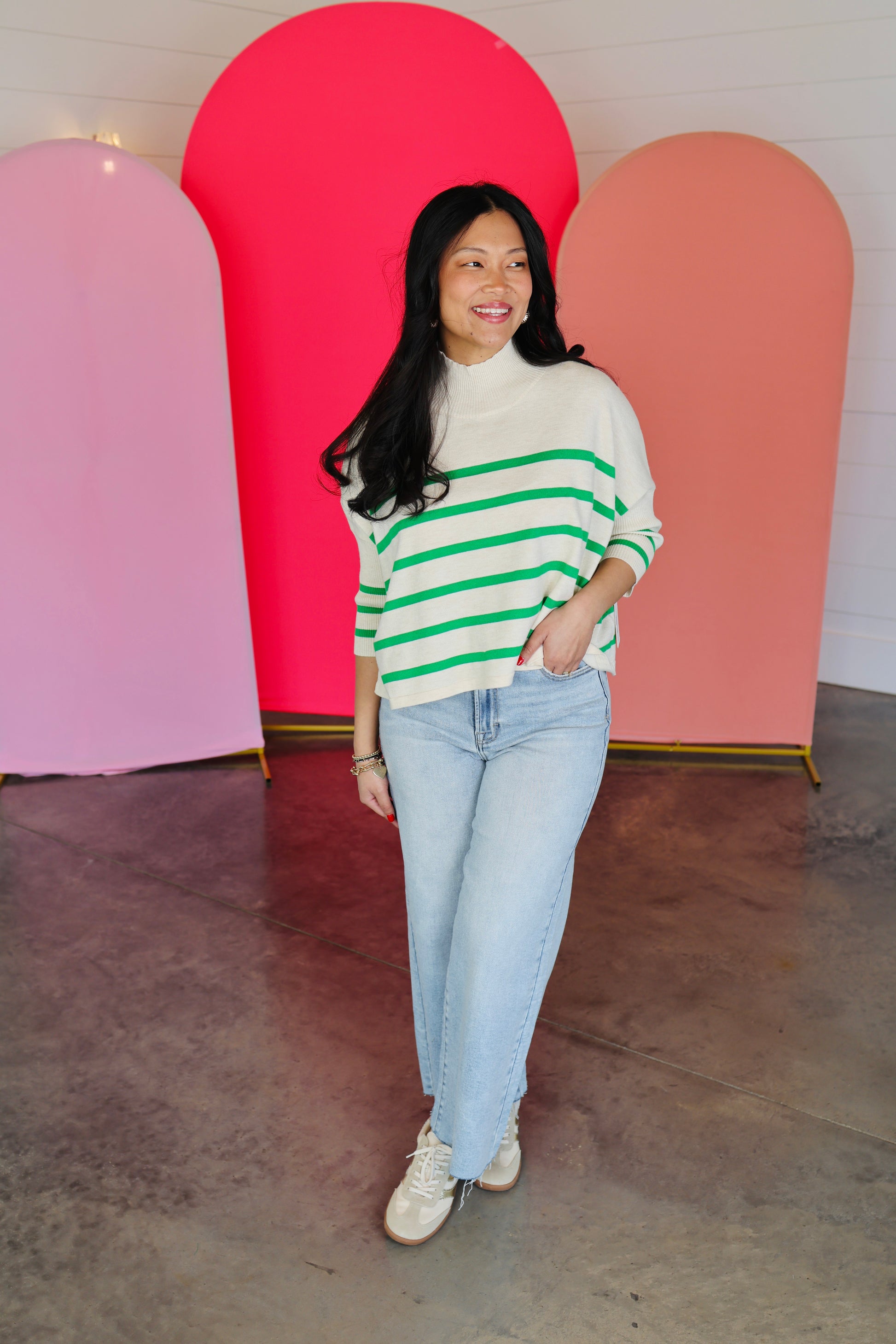 Aja Stripe Ivory/Green Sweater Top