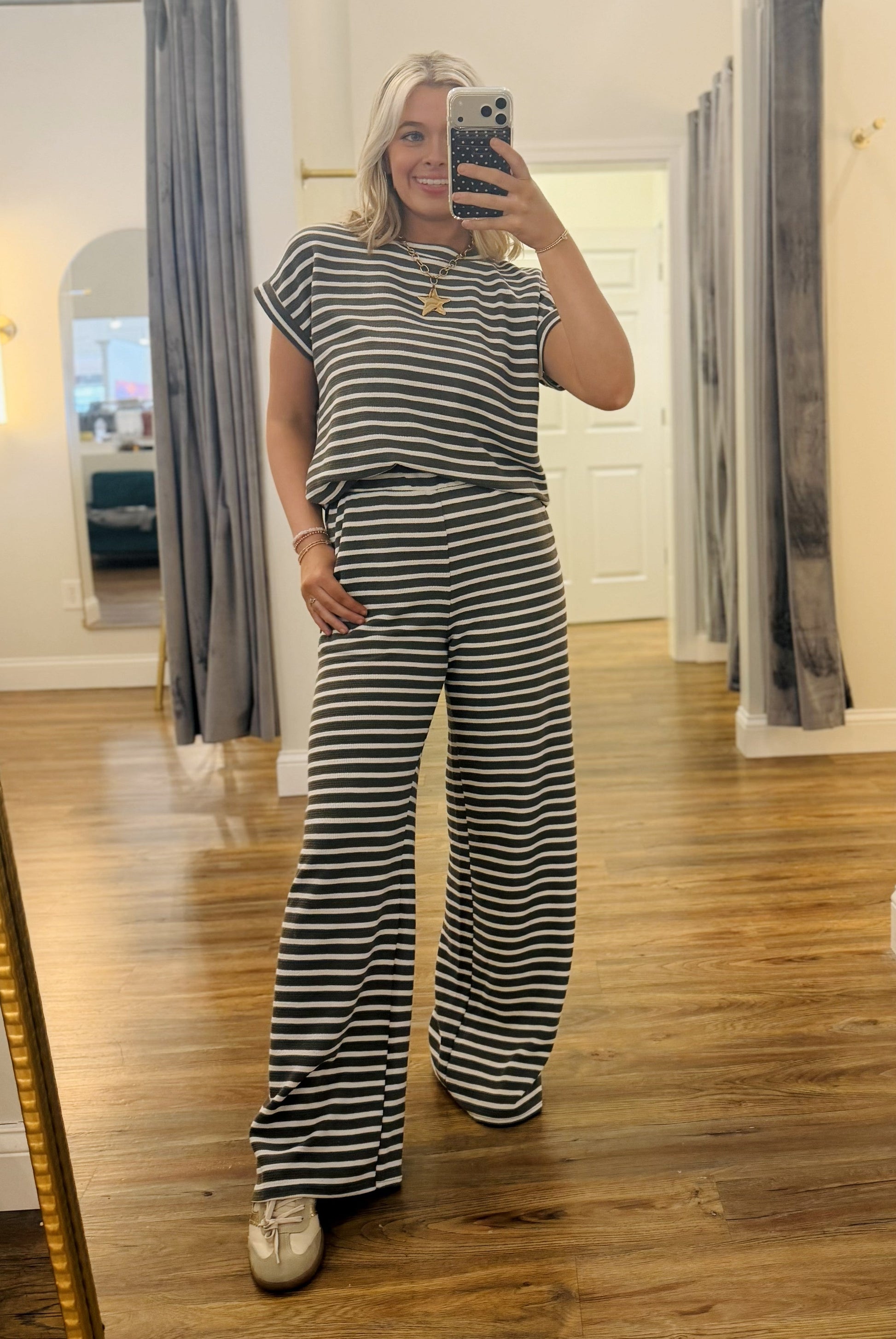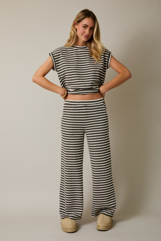 Knit striped top and pants set