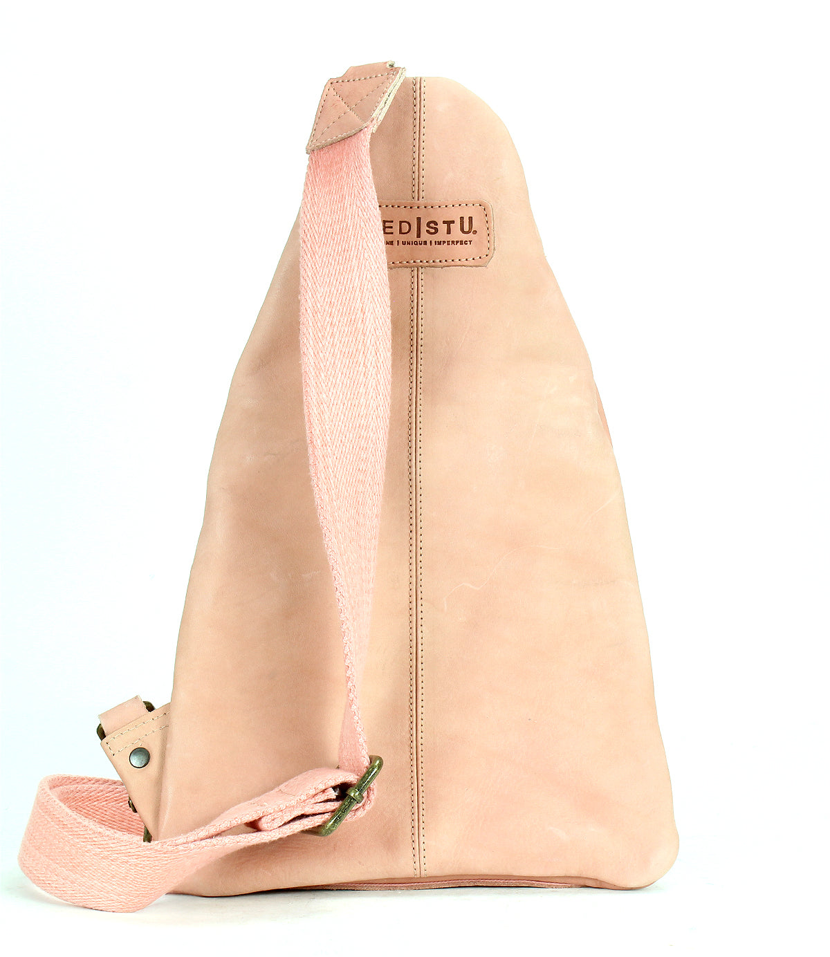 Share this bag with your partner, it works for everyone! A leather sling backpack perfect for traveling or flea marketing, ANDIE is small & compact perfectly holding passport, phone, snacks, water bottle and anything else the light traveler needs, and a place for cash, canteen and fuel for the treasure hunter. ANDIE is a lifesaver on space and function. Grab this one and go, pretty much anywhere.