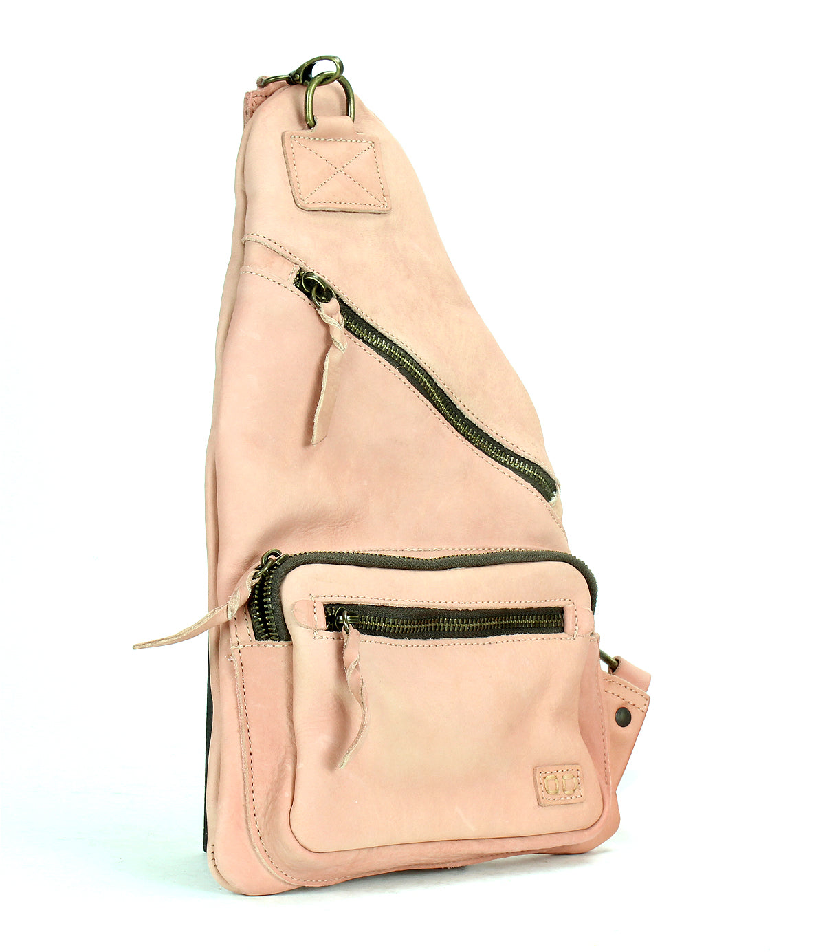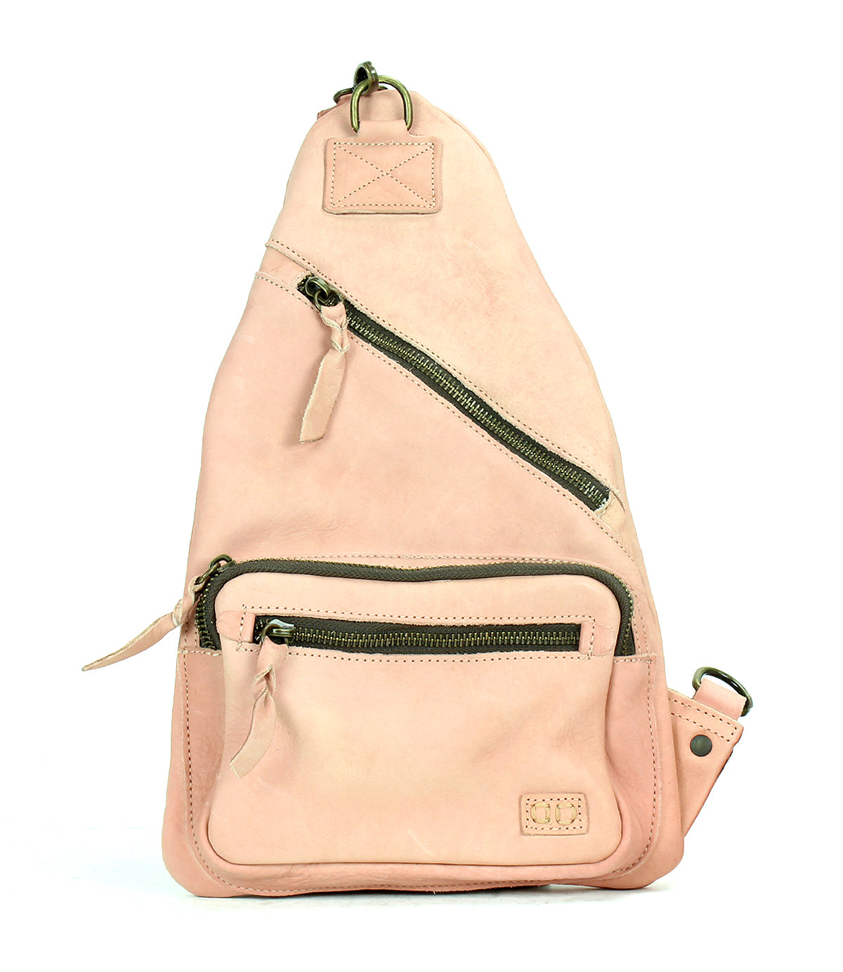 Sling leather backpack, 3 external zipper pockets, inside 1 zipper & 1 slip pocket