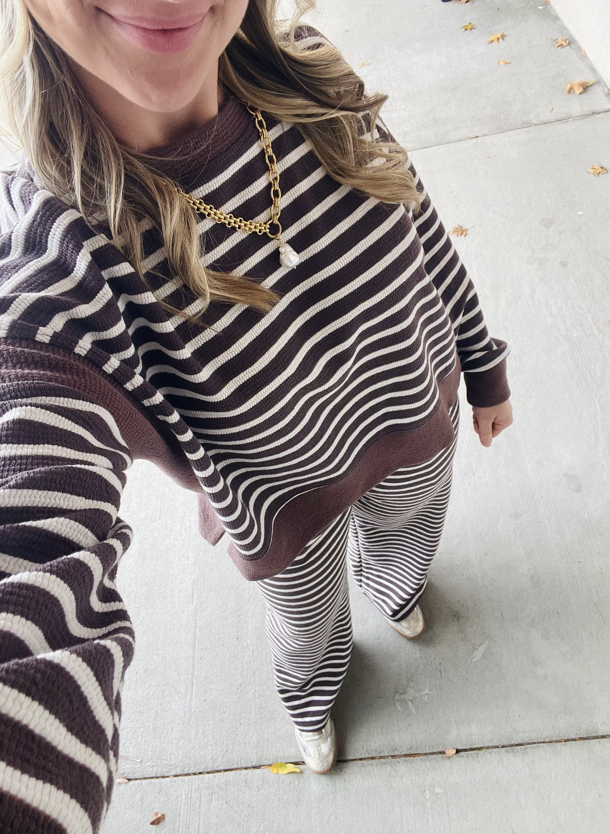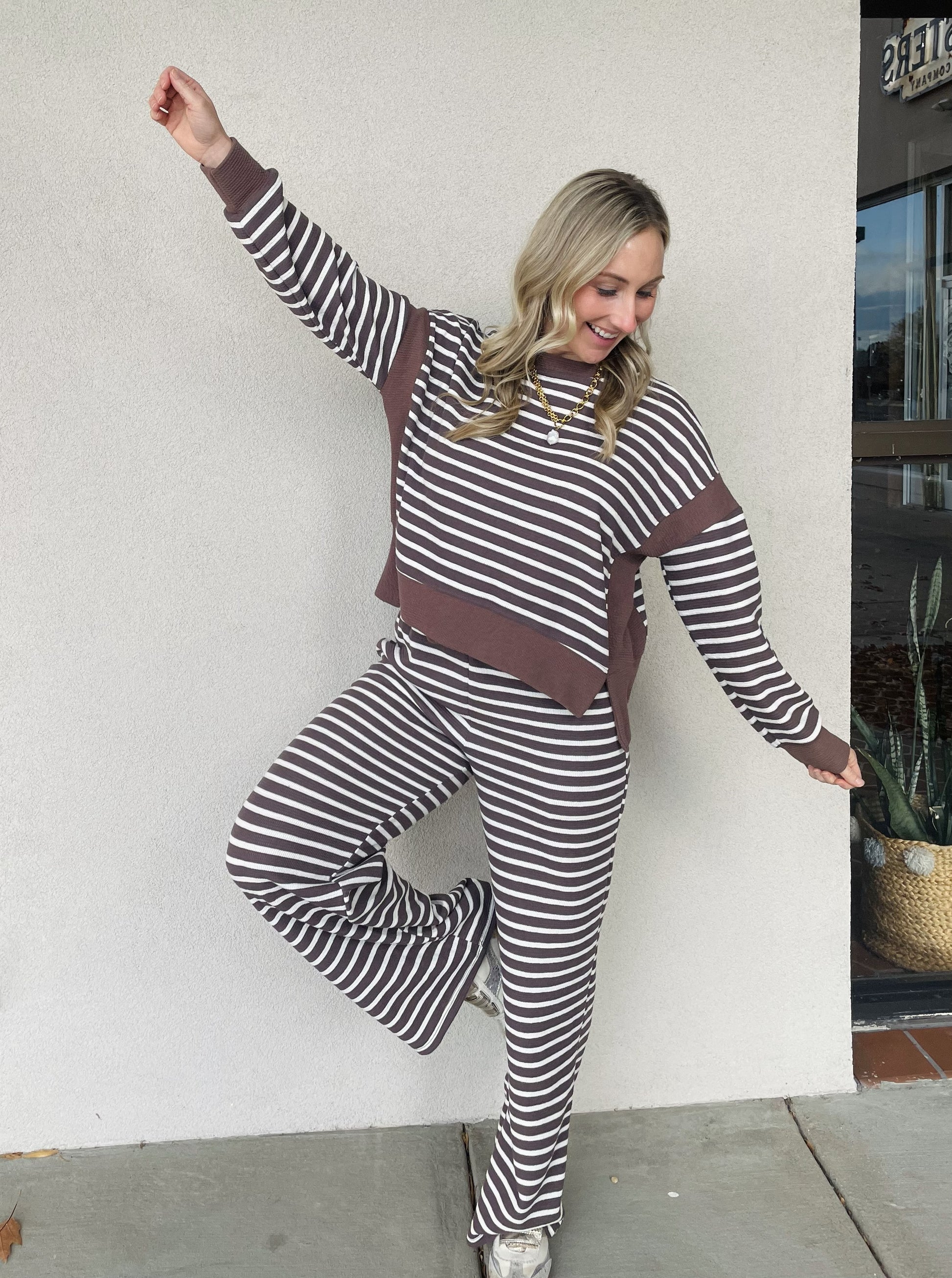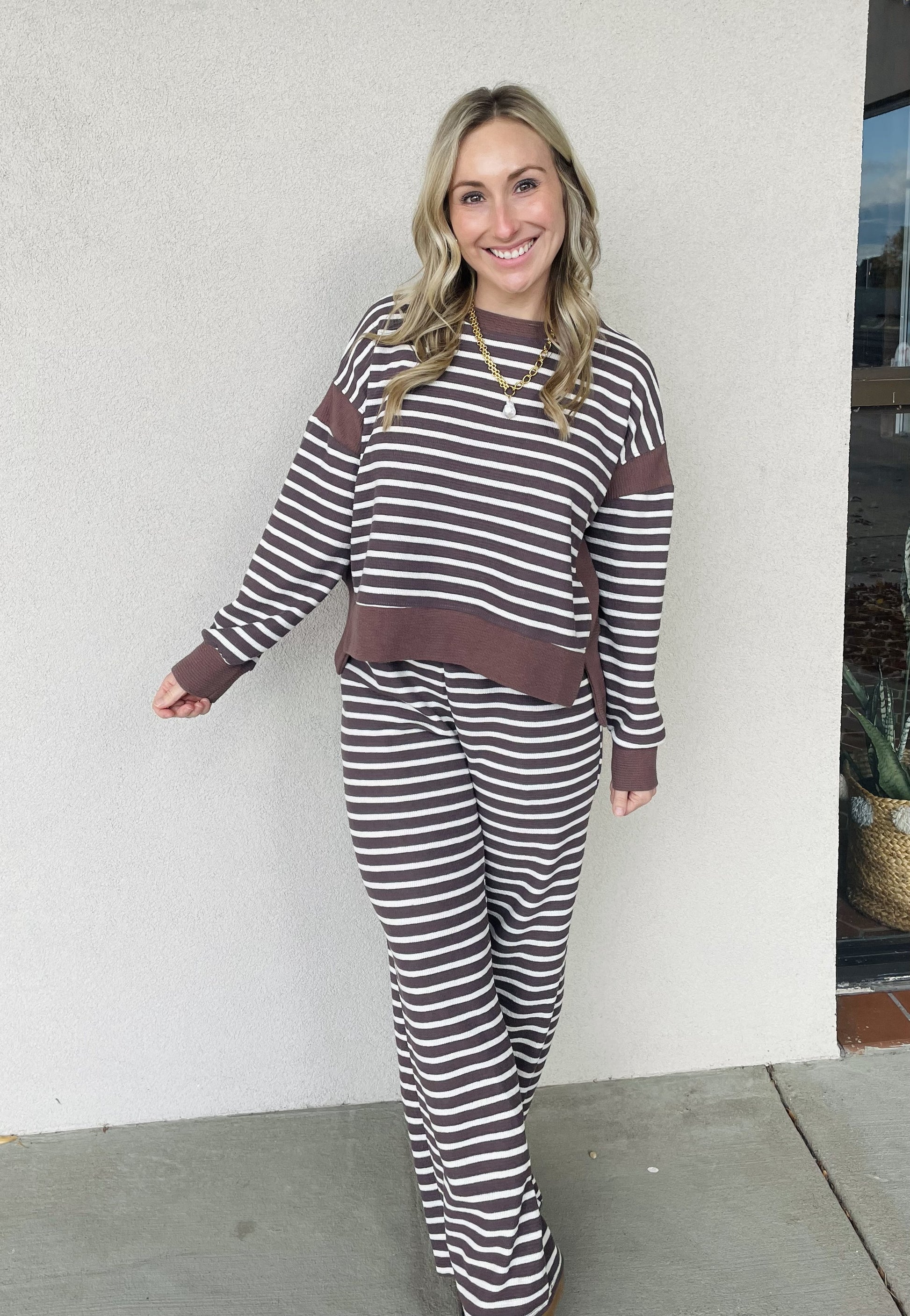 Cloudy knit striped pants and top set