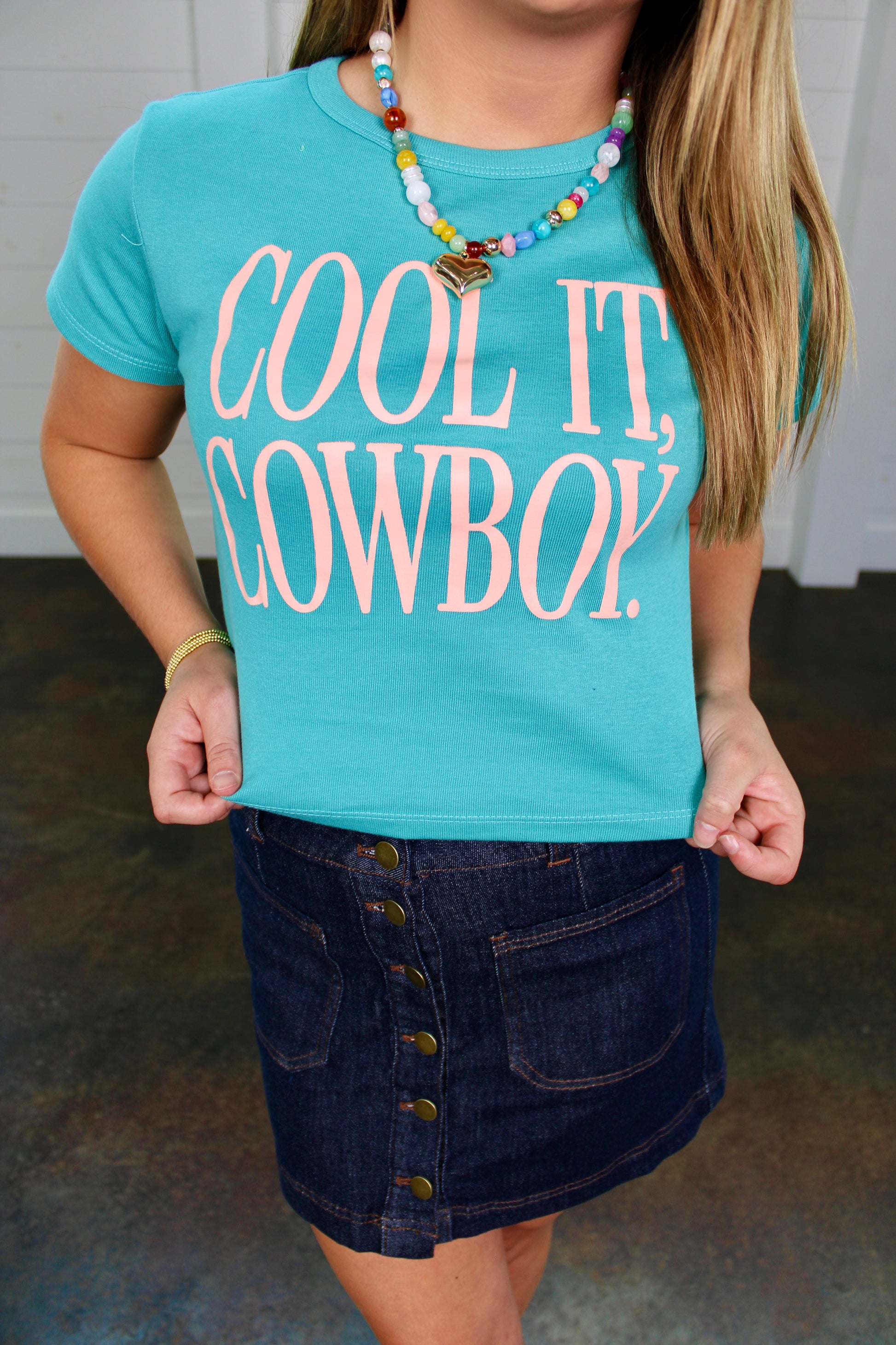 Step into style with our Women's Premium Cool It Cowboy Sea Foam Tee, crafted from 100% cotton fabric for a comfortable and soft feel.