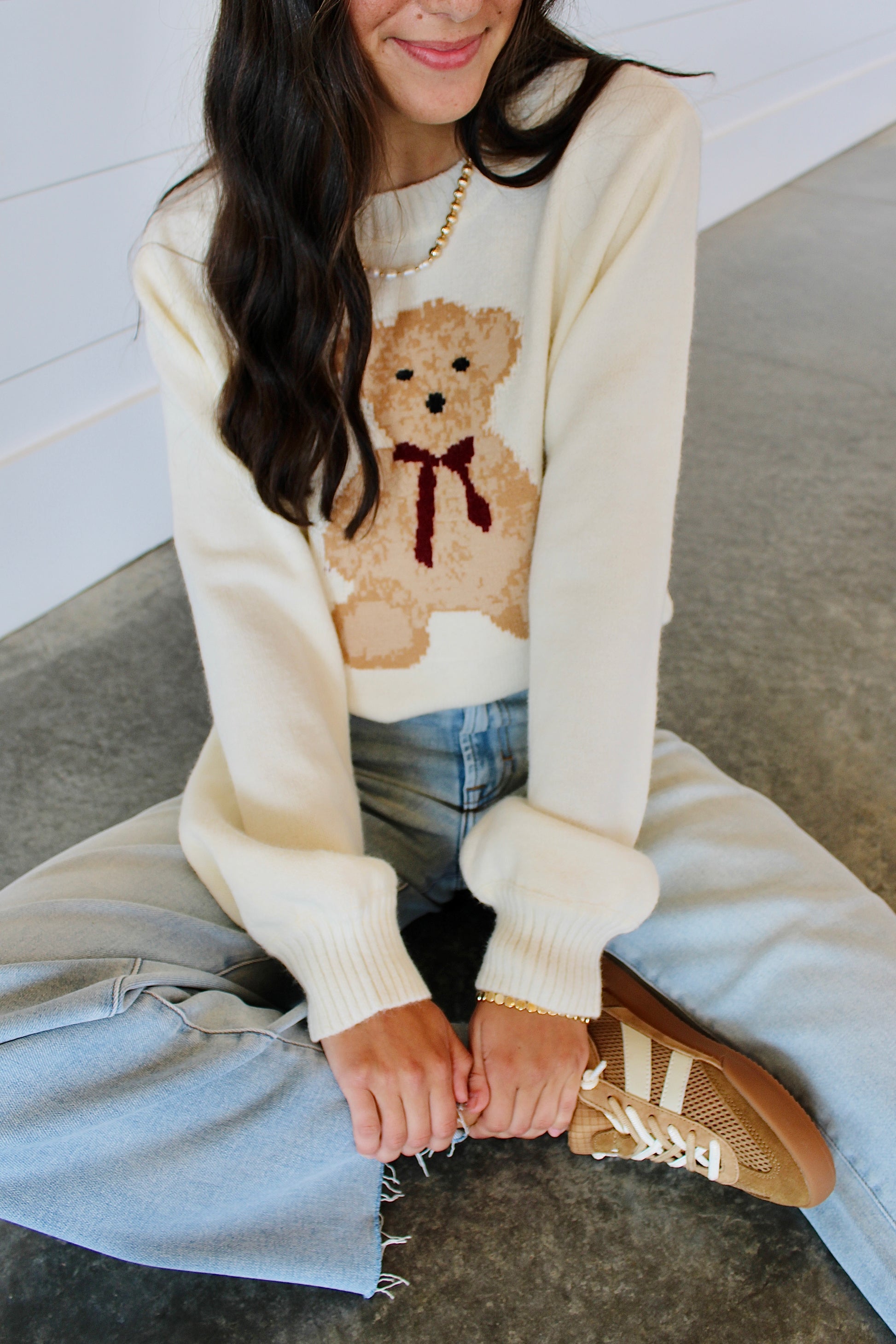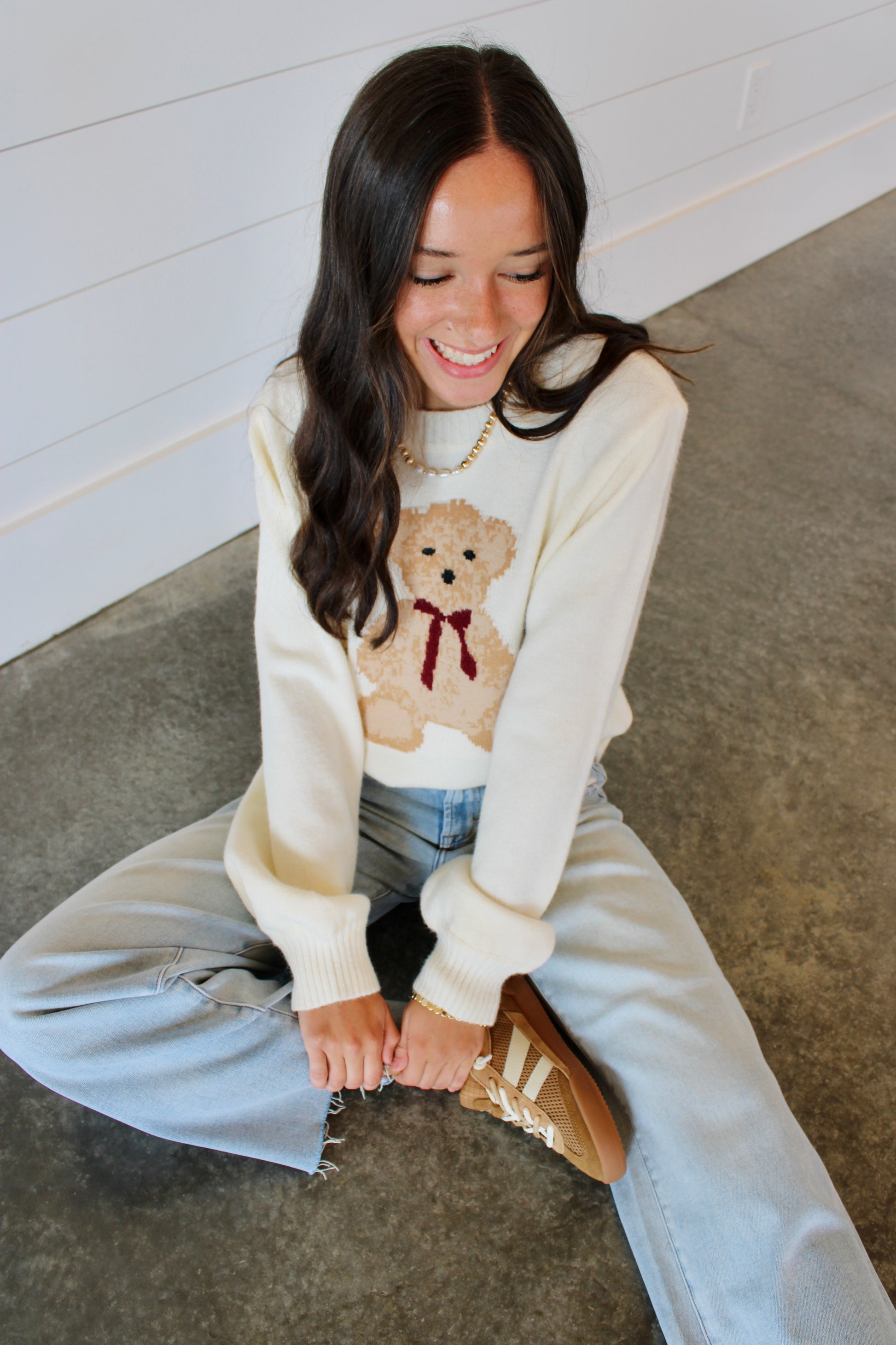 Long sleeves cutesy teddy bear sweater top, soft and warm sweater.