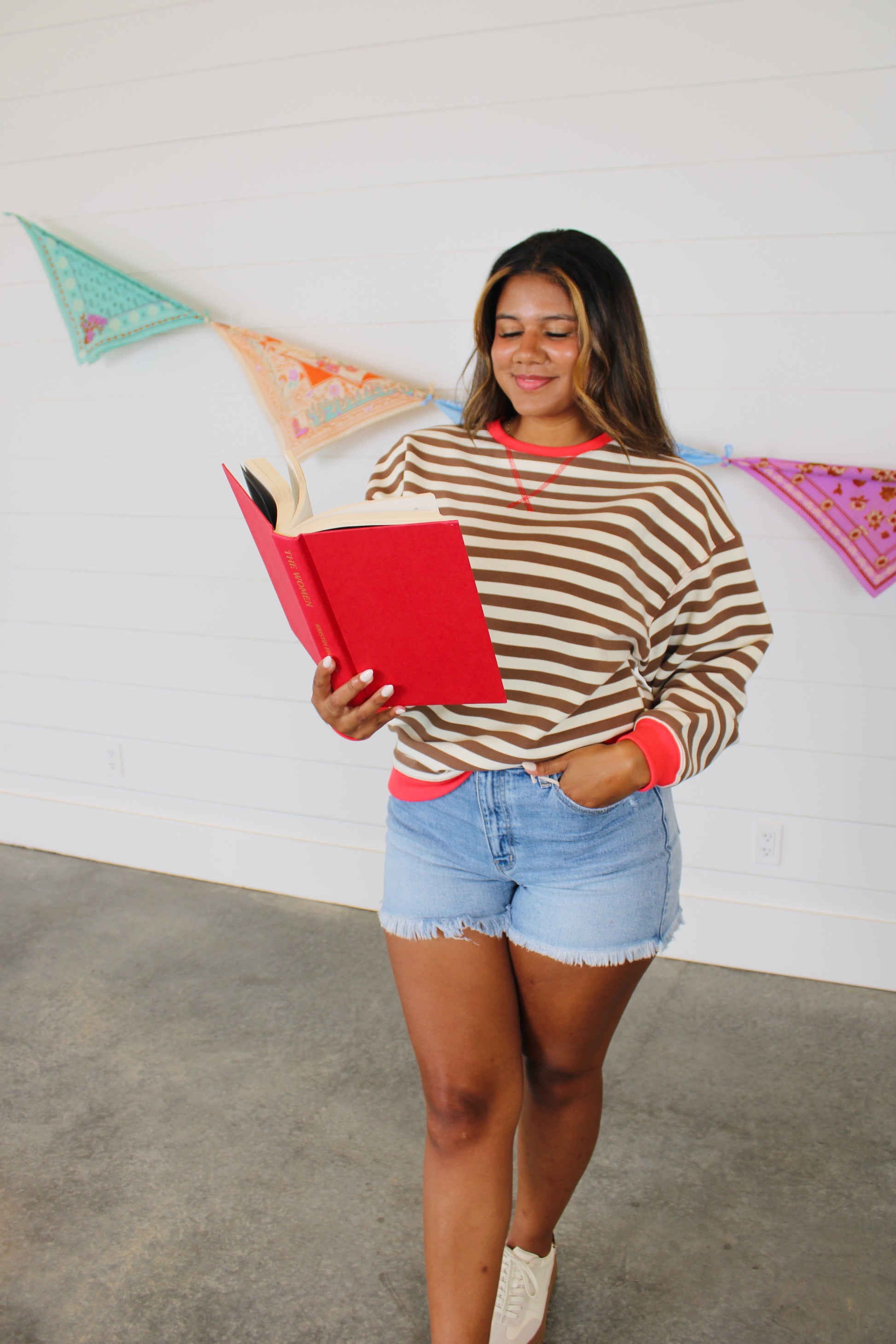 Striped oversized crewneck top