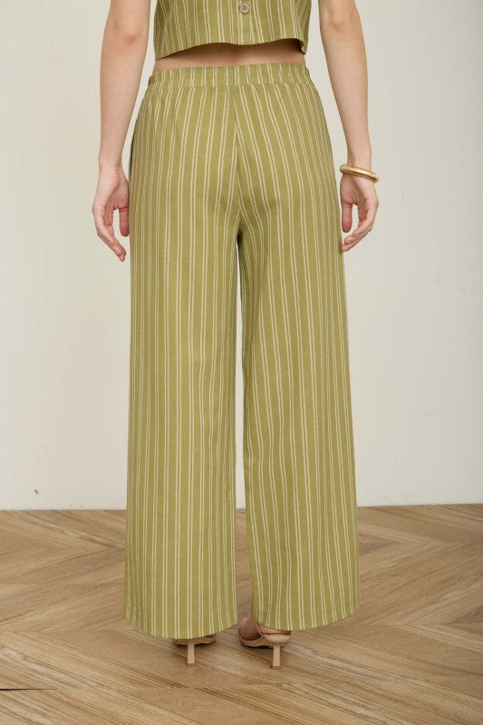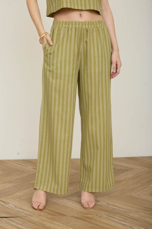 Stripe Elastic Waist Linen Lounge Pants and Top Set