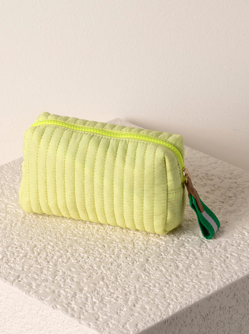 Perfect your on-the-go lifestyle with Ezra Small Boxy Cosmetic Pouch. This pouch features a sleek quilted body, and a boxy silhouette, perfectly pairing with Ezra Totes. Measuring L 7" × W 3" × H 4", and made from nylon, the Ezra Small Pouch is equipped with an inner zip and slip pocket, maximizing the space this pouch provides. This pouch is perfect for storing your makeup, toiletries or any odds and ends that you may need during travel or on a daily basis. Pair with other items from to complete your look!