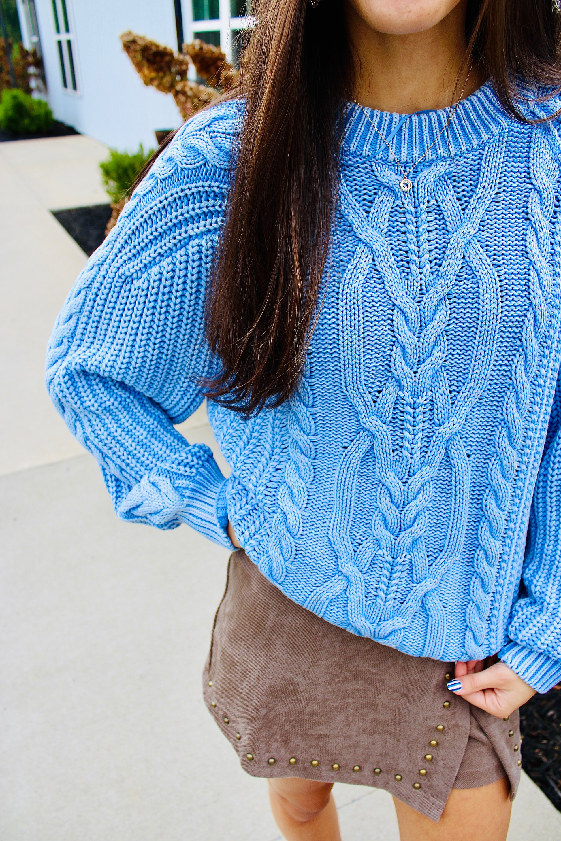 A new take on a forever classic, this staple sweater is featured in a chunky knit fabrication with timeless cable detailing throughout for an added special touch.