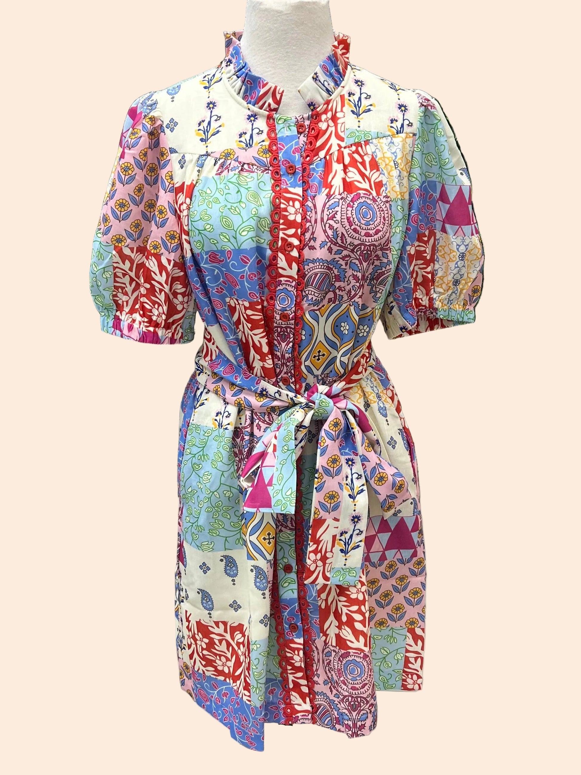 Front button down multicolor shirt dress