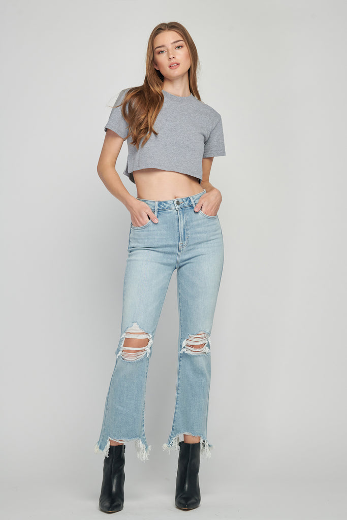 Happi Medium Wash Cropped Flare Denim
