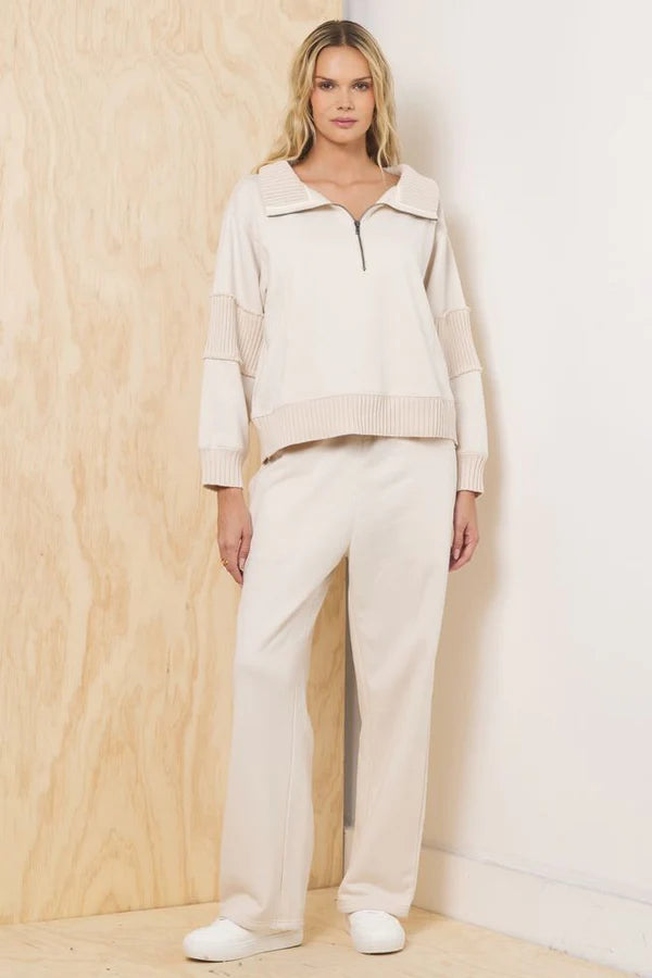 The Fleece Quarter Zip w/ Rib Detail in Bone combines comfort and style with its soft zip-up fleece fabric, perfect for layering on cooler days. Its lightweight warmth and easy-to-wear fit ensure you stay comfortable without sacrificing a polished look. Ideal for those seeking a practical yet refined wardrobe staple.