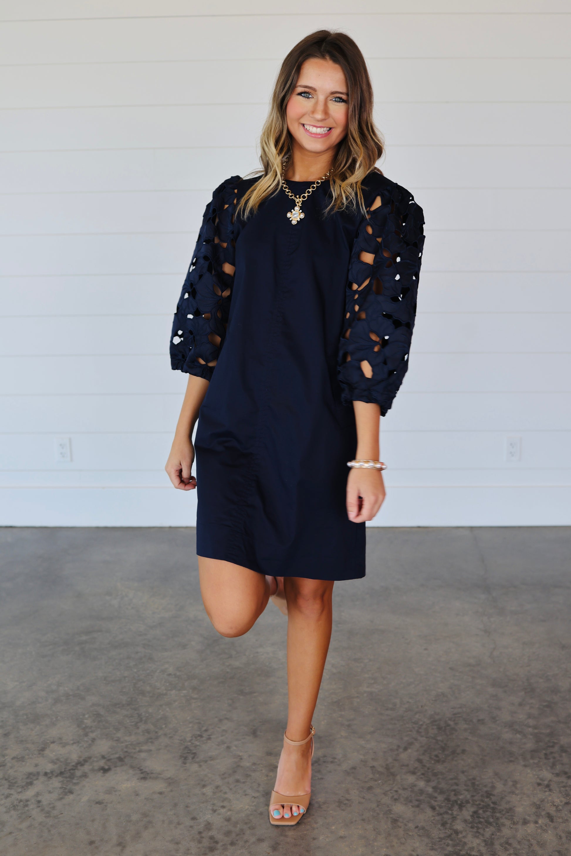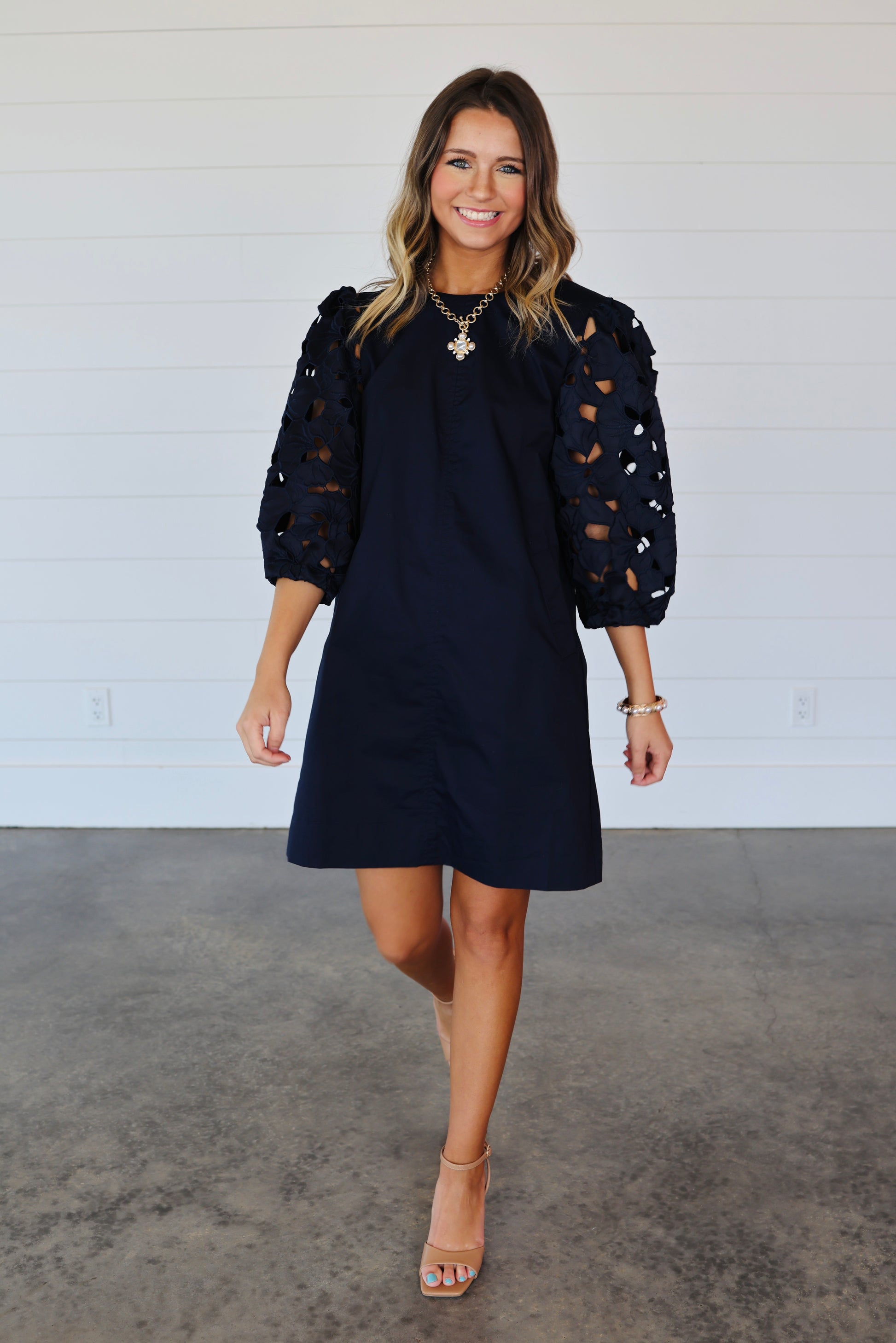Eyelet 3/4 sleeves dress