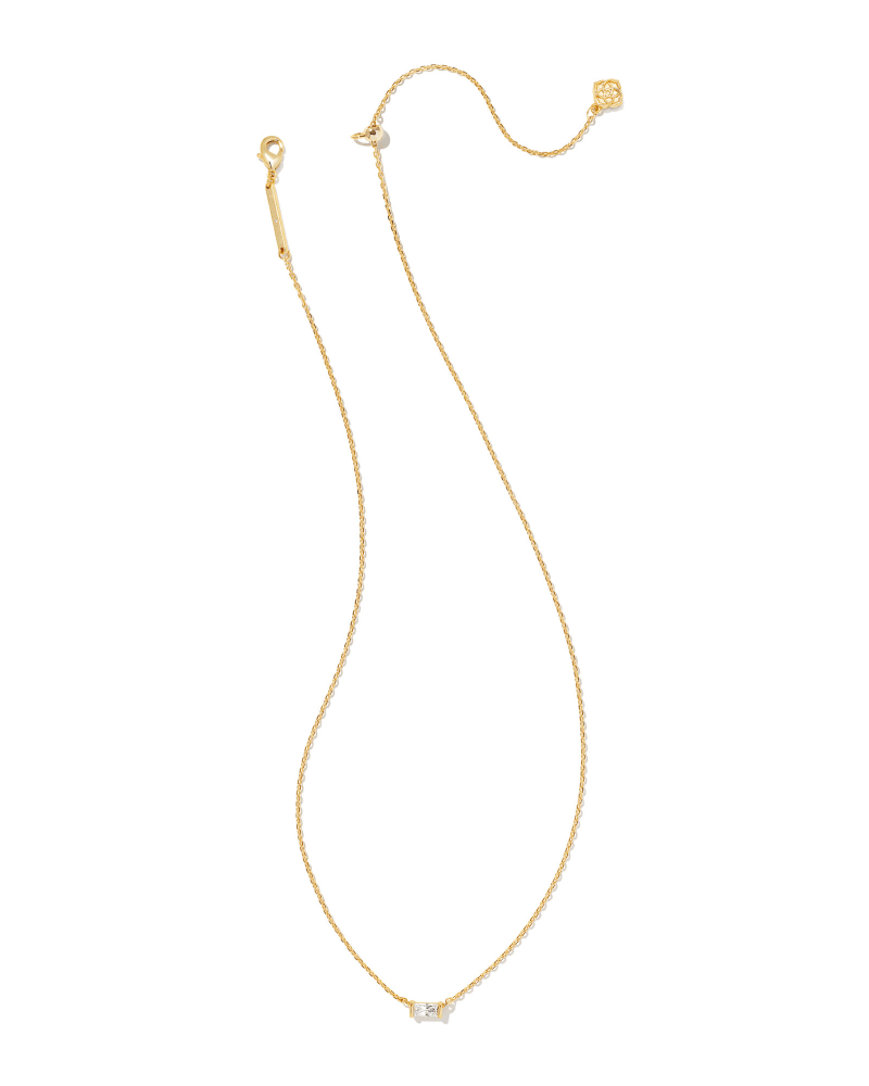 Subtle and refined, our Juliette Gold Pendant Necklace in White Crystal features a singular baguette stone for timeless style. From date nights to dinner parties, this sophisticated pendant is sure to shine bright at all your celebrations.