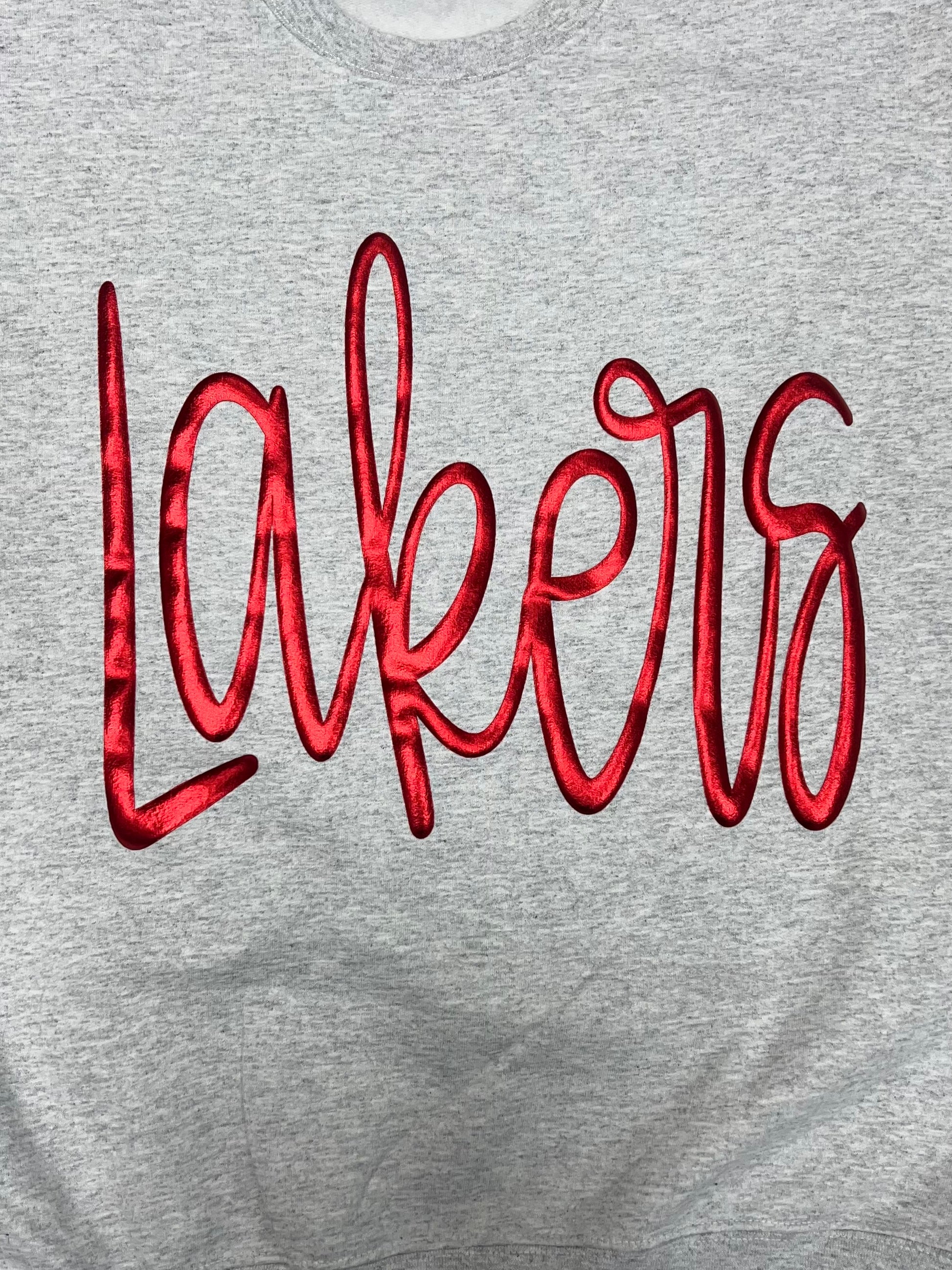 Show off your team spirit with our Lakers Sweatshirts with red metallic letters.