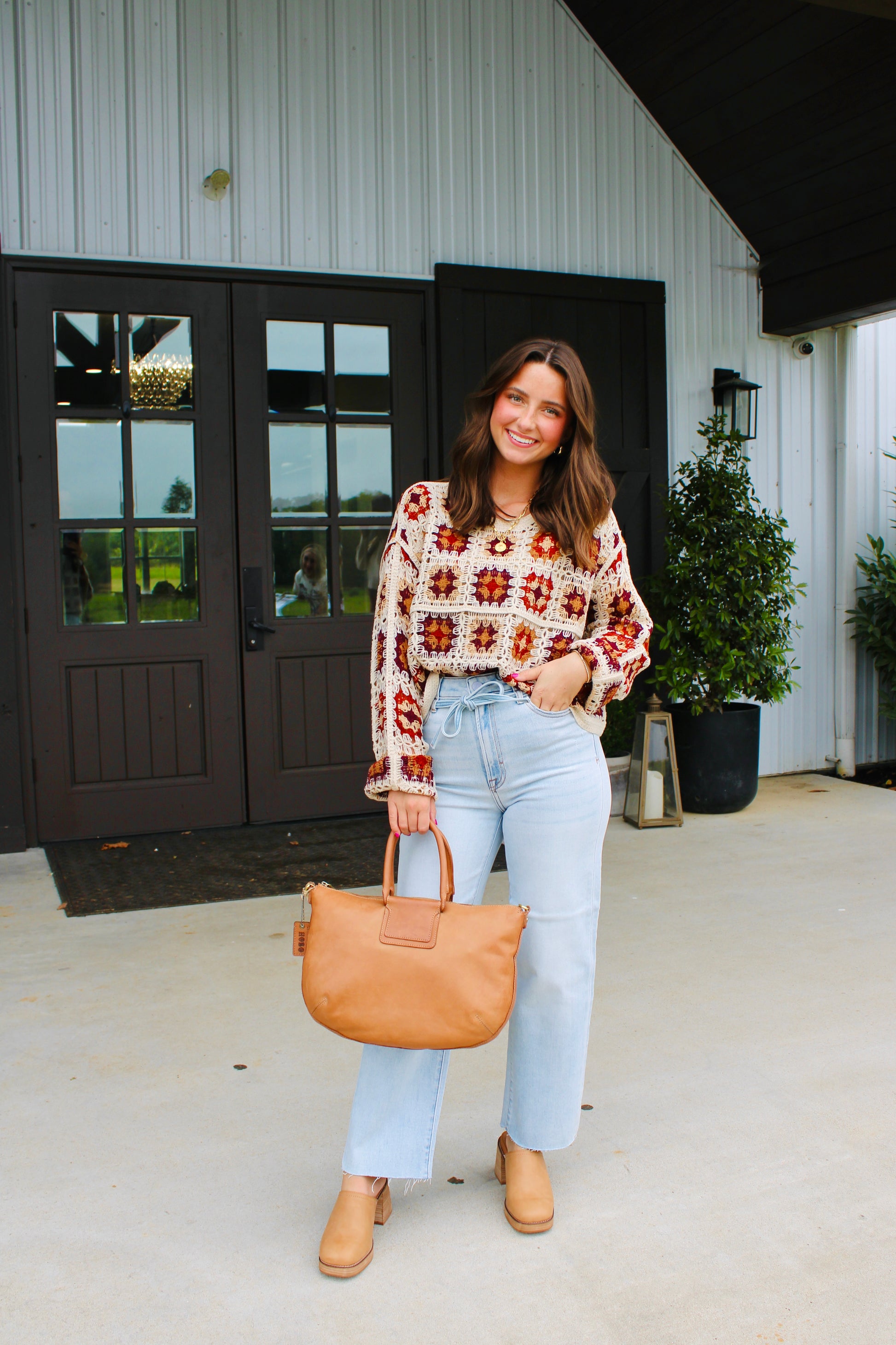 Crochet Squares Cropped long sleeves top