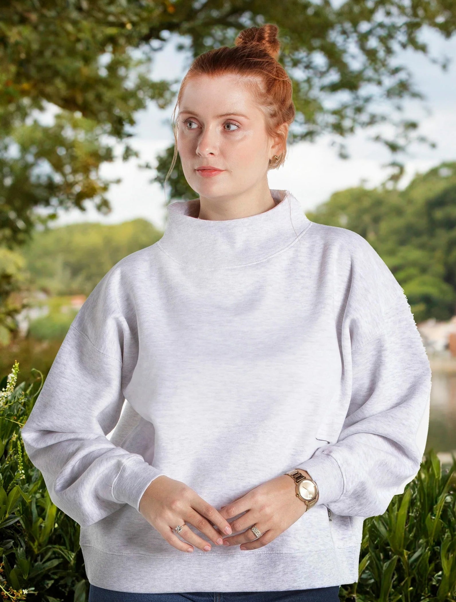 Lingo Mock Neck Crew Ash Fleece Sweatshirt