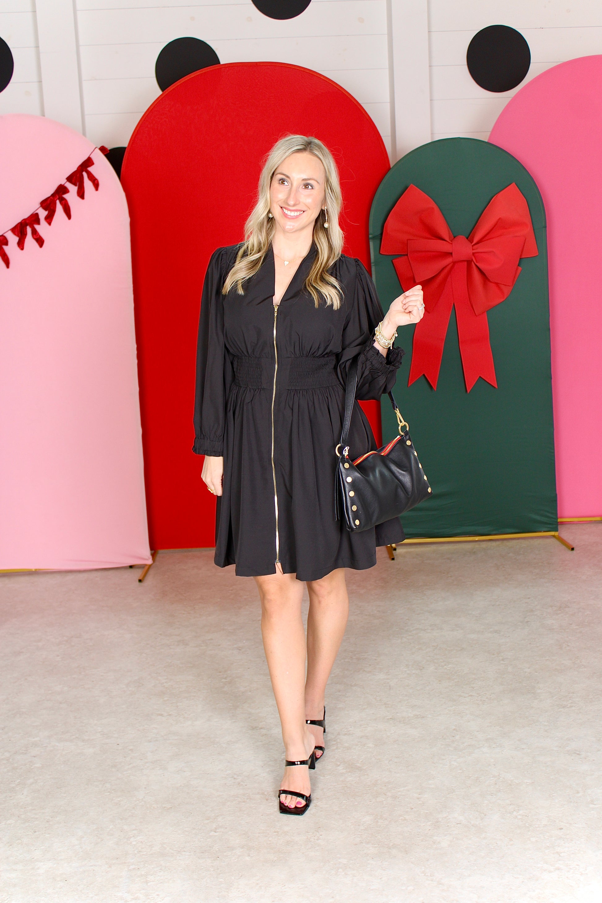 Zip-Front Smocked Waist Mini Dress