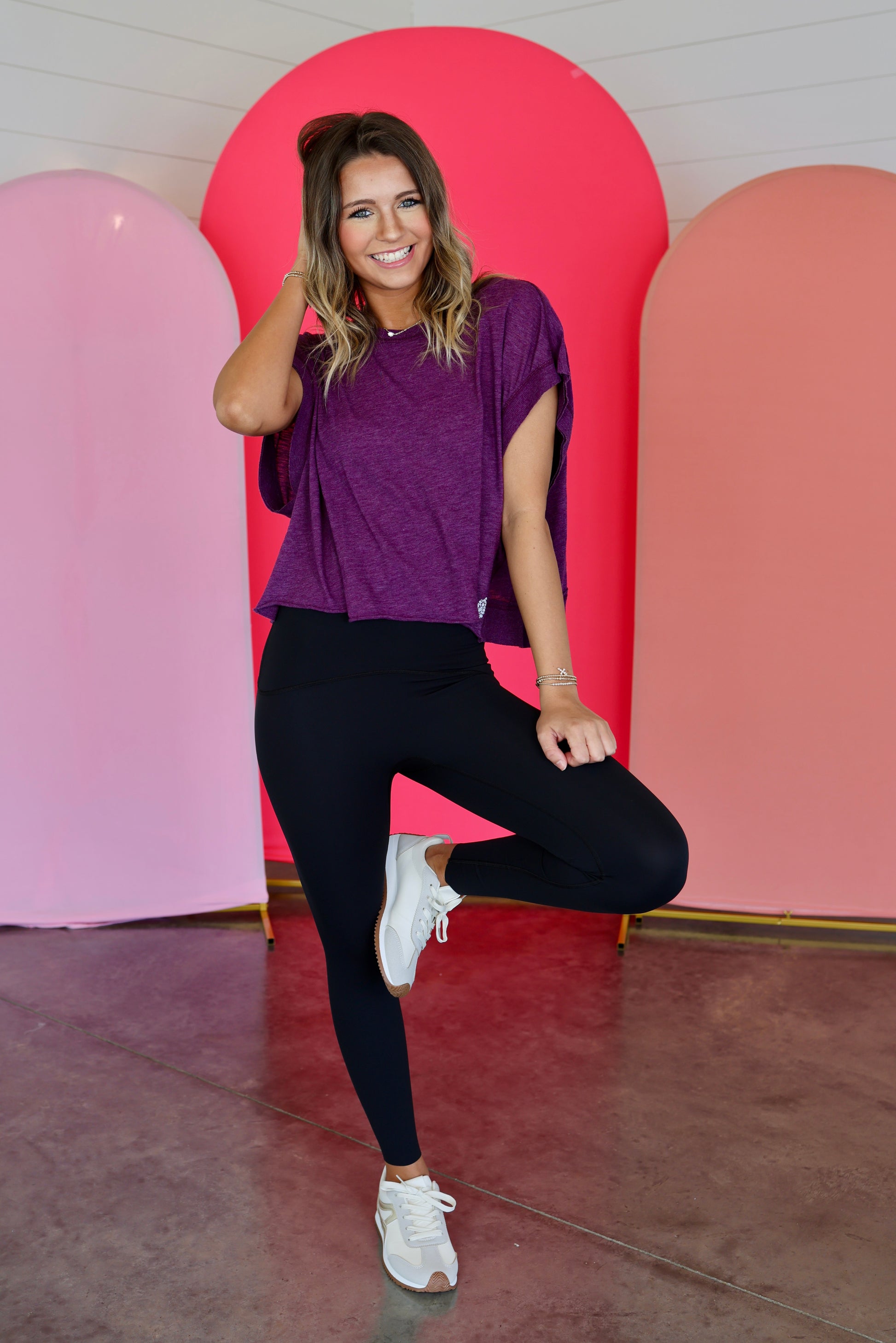 Make your next move in this light and airy layering tee featured in a slouchy design with a wrapped cutout back that’ll keep you cool through all your workouts.