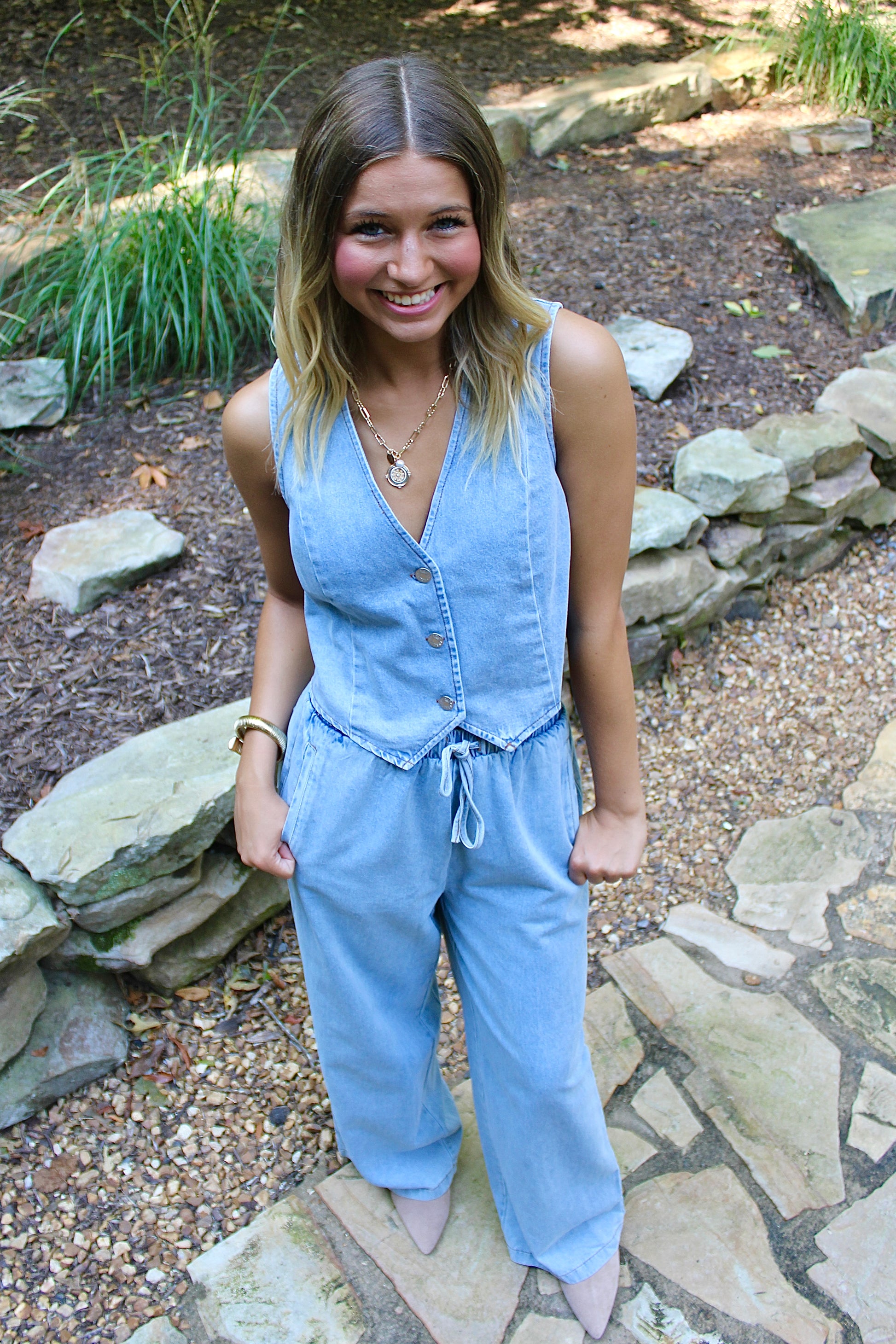 Washed denim vest