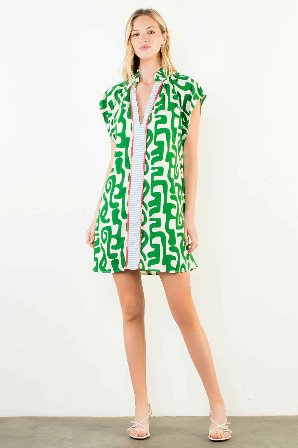 Short Sleeve Pattern V Neck Dress