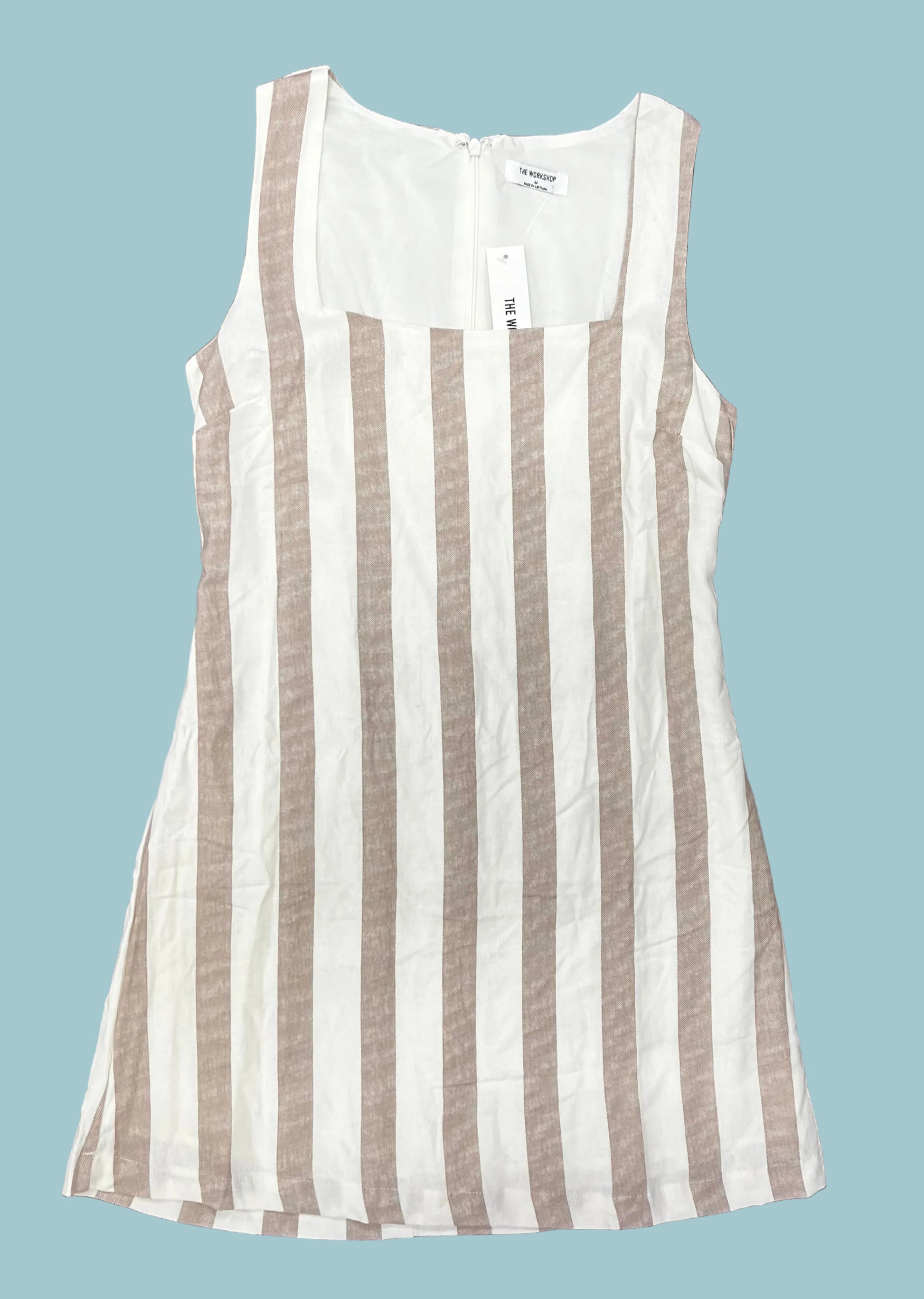 Square neckline sleeveless Linen Mini Dress