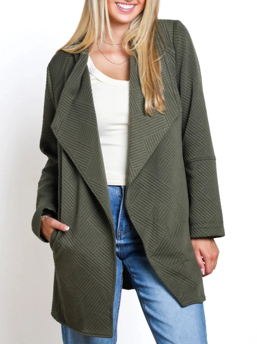Long sleeves quilted open front cardigan