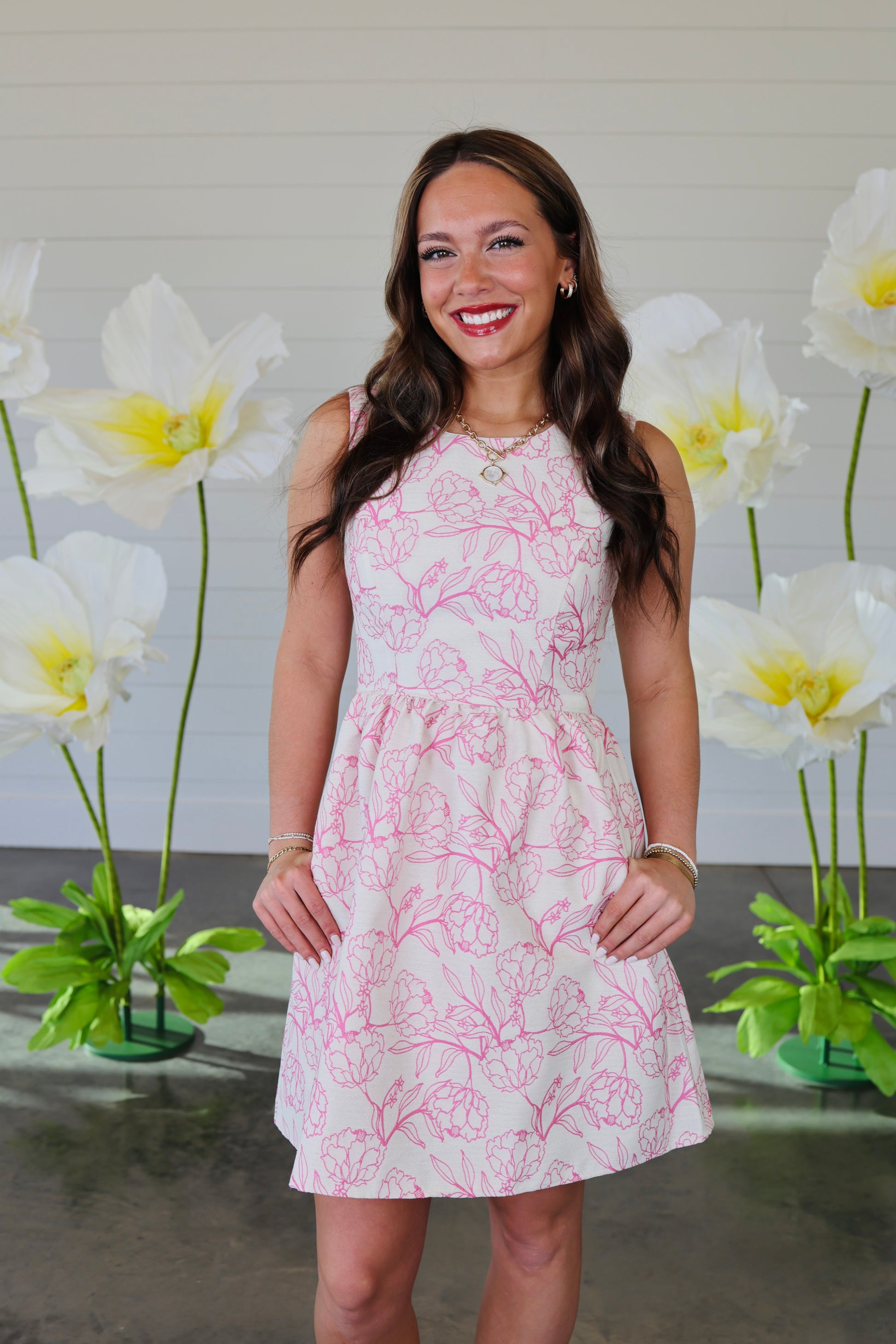 Sleeveless woven floral jacquard dress