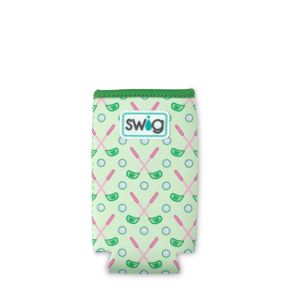 Cool drinks, dry hands! 🍺 Tee it up in this fun, minty green and pink scene of golf clubs and golf balls.