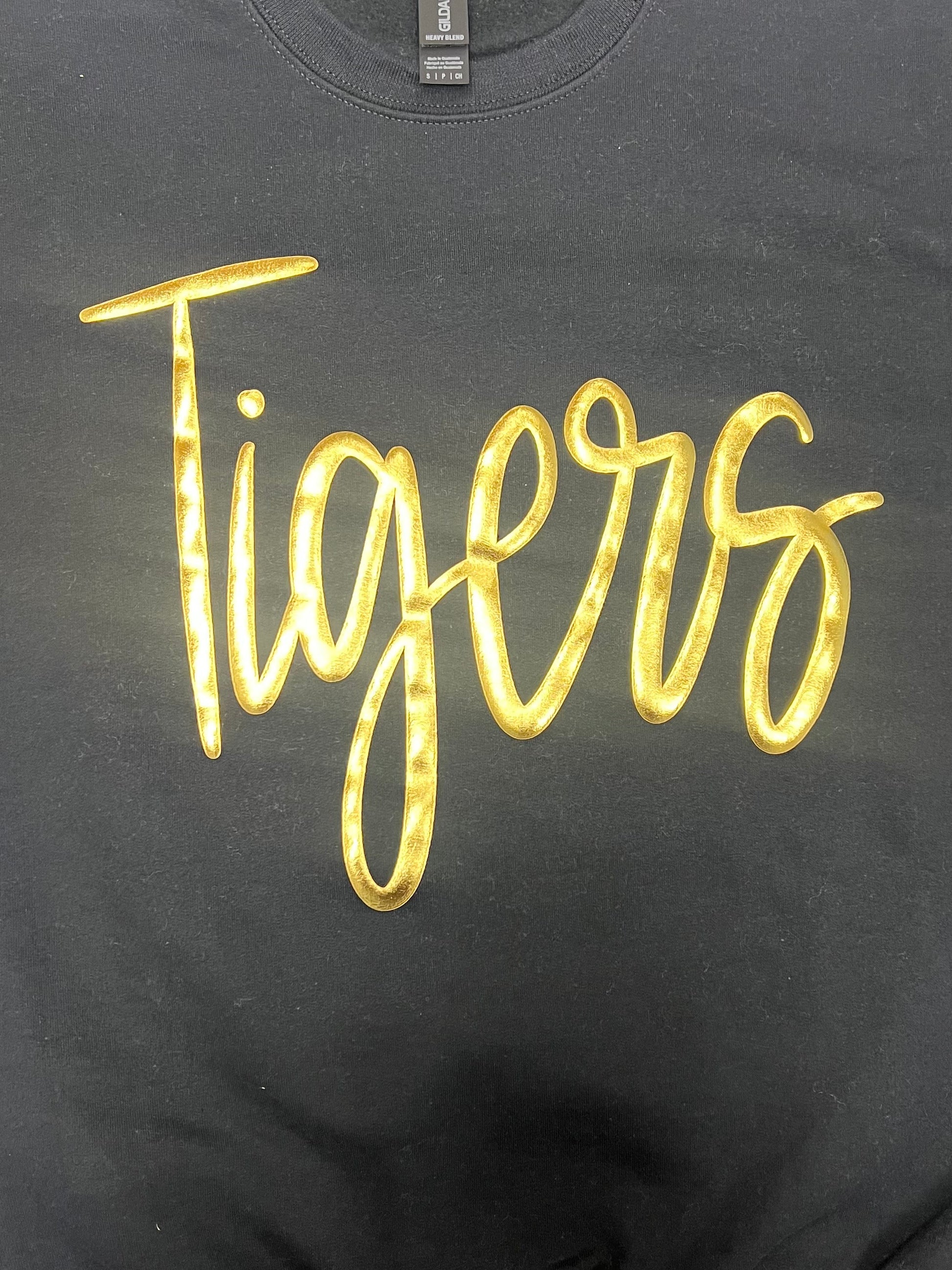 Show off your team spirit with our Tigers Sweatshirts with gold metallic letters.