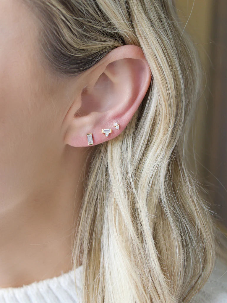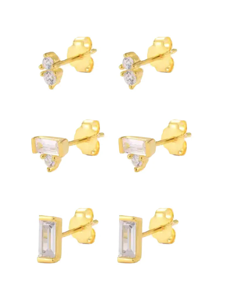 The UPSTAGE Stud Earrings are 3 sets of stud that can be worn individually or as a fun earring stack.