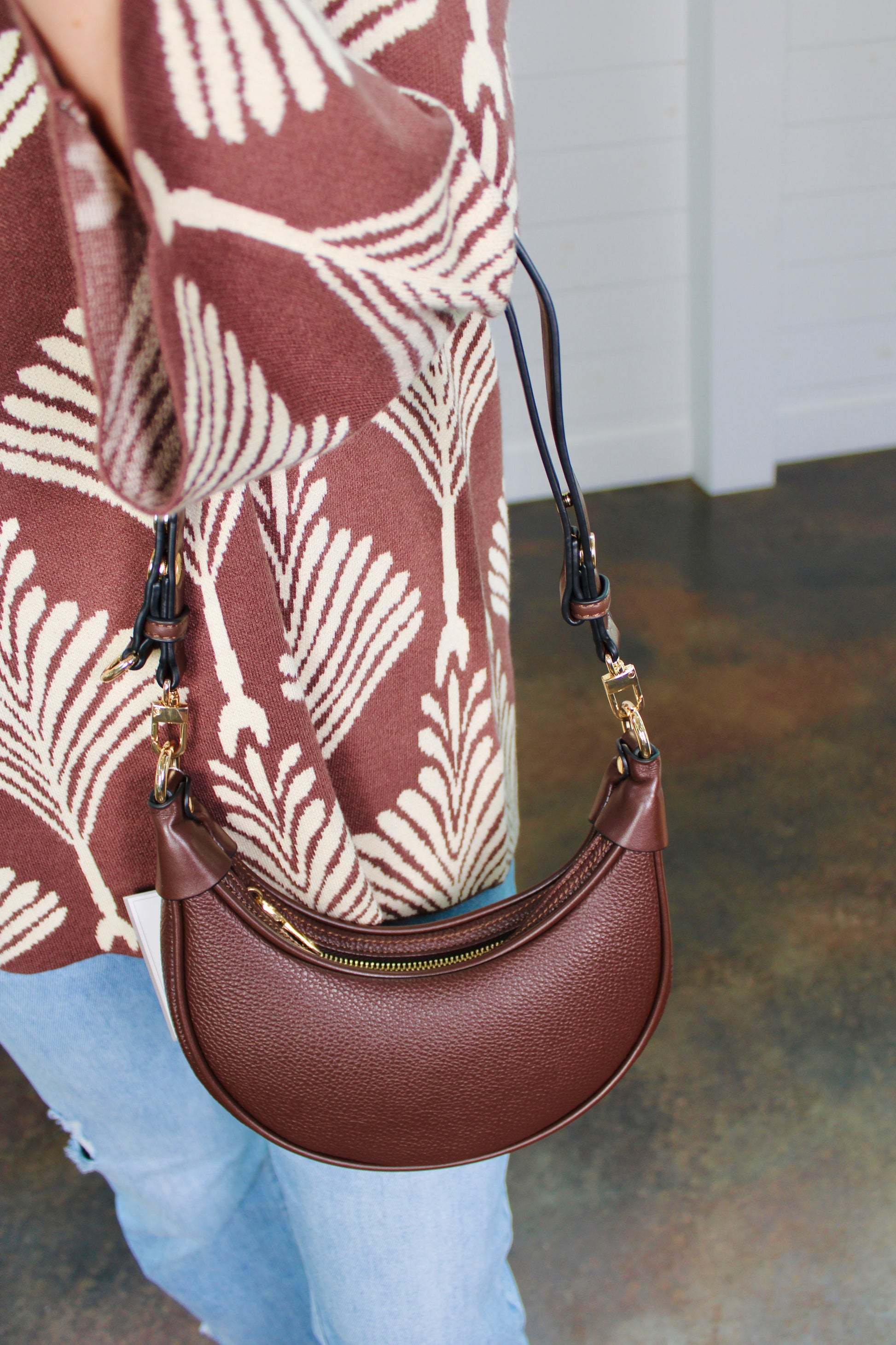 Zora Espresso Half-Moon Shoulder Bag